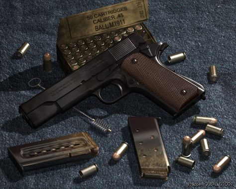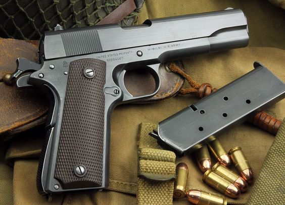 Die Colt M1911 ist eine 45-Zoll-Halbautomatikpistole, die von Browning entwickelt und von Colt hergestellt wurde.