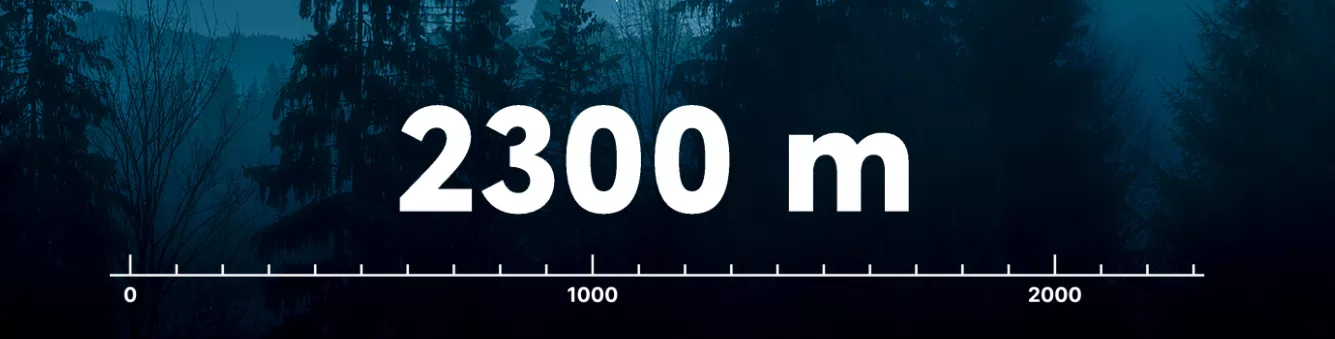 Ein leistungsstarkes Objektiv in Kombination mit einem professionellen HD-Wärmebildsensor mit einer Auflösung von 12 µm / 1024 x 768 Pixeln bietet hervorragende Erkennungsmöglichkeiten. Ein typisches 1,8 m hohes Objekt kann aus einer Entfernung von 2300 m in völliger Dunkelheit erkannt werden.