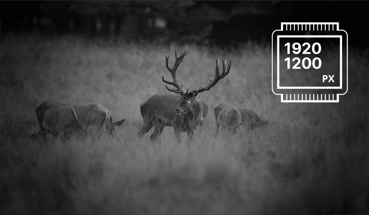 digitaler Nachtkanal mit hoher Auflösung und hoher Detailqualität. Silhouetten, anatomische Unterschiede, Verhaltensbesonderheiten - die HD-Elektronik zeigt die Trophäenmerkmale des Tieres an und liefert dem Jäger die nötigen Informationen für die richtige Schussentscheidung.