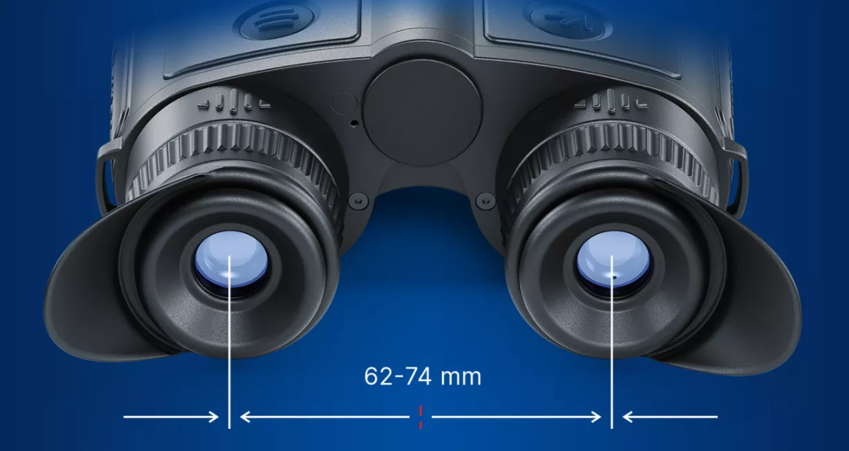 Für den Menschen ist es ganz natürlich, visuelle Informationen über zwei Sehkanäle gleichzeitig zu empfangen. Das Sehen mit zwei Augen ist weniger ermüdend als das Sehen mit einem Auge. Der Augenabstand des Fernglases ist je nach den individuellen Eigenschaften des Benutzers von 62 bis 74 mm einstellbar.
