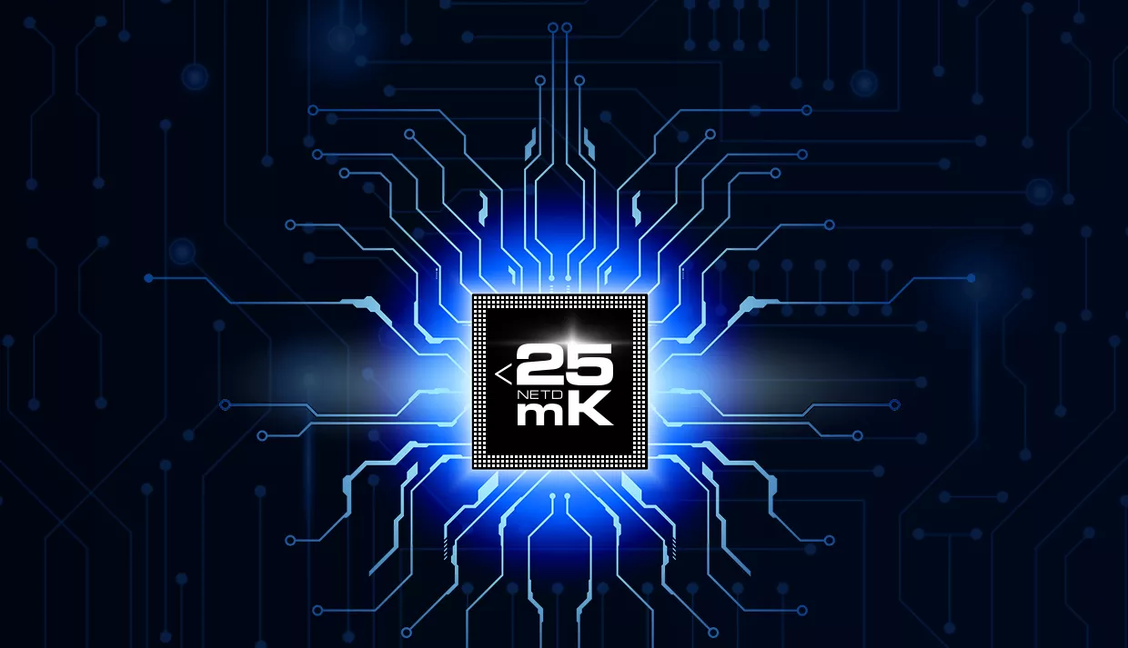 NETD <25mK gewährleistet eine erstaunliche Wärmebildqualität und eine perfekte Detailerkennung selbst unter den schwierigsten Wetterbedingungen, bei denen der Wärmekontrast gering ist. Selbst die kleinsten Temperaturunterschiede werden bei Regen, Nebel oder an einem kalten Morgen deutlich sichtbar - die schwierigsten Bedingungen für eine Wärmebildkamera.