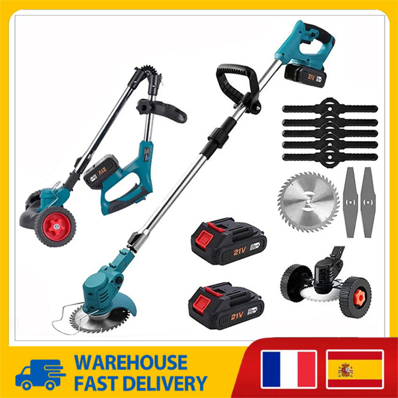 Electric Lawn Mower Handheld Cordless Garden Grass Trimmer 100-135cm Length Adjustable For Makita 21V 380W 2 Battery Tool