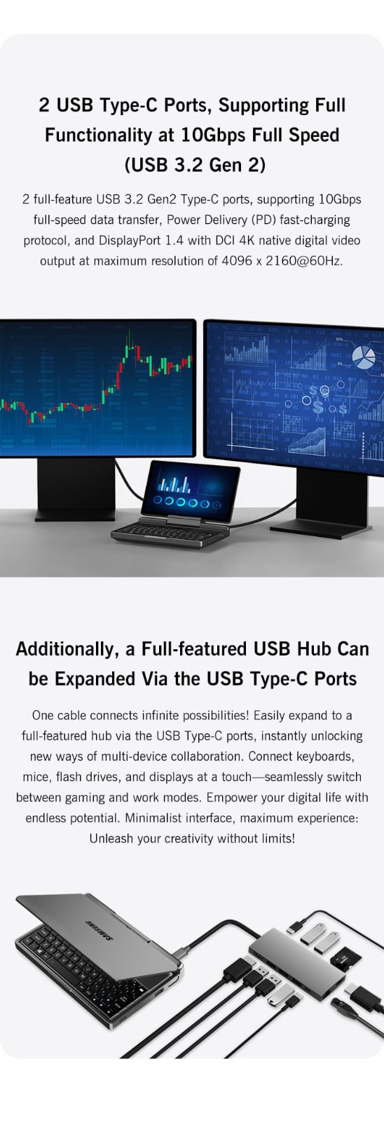 2 USB-C-Vollfunktionsanschlüsse, 2 USB-A-Anschlüsse