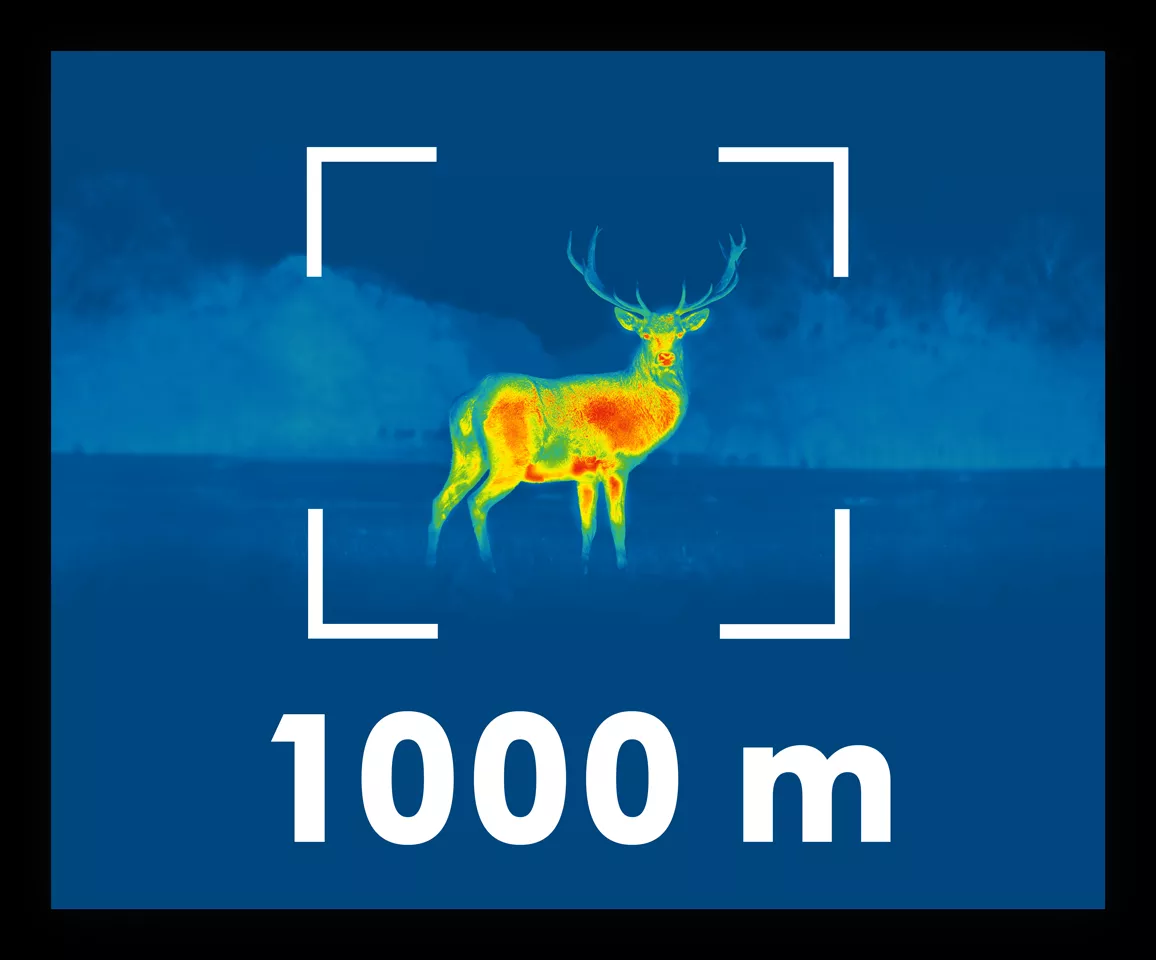 Výkonný objektiv v kombinaci s profesionálním HD termovizním senzorem s rozlišením 12 µm / 1024 x 768 pixelů zajišťuje vynikající detekční schopnosti. Typický objekt vysoký 1,8 m lze detekovat v naprosté tmě z nadmořské výšky 2300 m.
